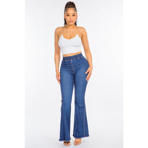 High waist curvy flare jeans are a trendy and stylish choice for anyone looking to accentuate their curves. The elastic banded waist provides a comfortable and secure fit, while the slim-fitting design hugs your curves in all the right places. The flare bottom adds a touch of retro flair to the look, making these jeans a versatile wardrobe staple. The stretchy denim material ensures that you can move freely and comfortably throughout the day. These jeans are perfect for dressing up or down, making them a great addition to any fashion-lover's closet.
