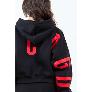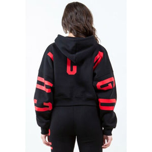 American Bazi Letter Graphic Long Sleeve Drawstring Cropped Hoodie