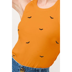 The bat embroidered ribbed tank is a stylish and playful piece perfect for the spooky season! Made from soft, ribbed fabric, it features charming bat embroidery that adds a whimsical touch. The fitted silhouette makes it great for layering or wearing on its own with your favorite jeans or skirts. Ideal for Halloween festivities or casual outings, this tank combines comfort with a fun theme, making it a versatile addition to your fall wardrobe!