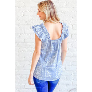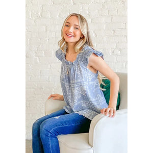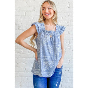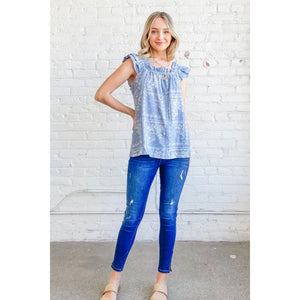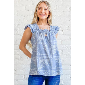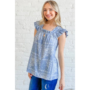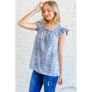 And The Why Boho Print Rayon Linen Ruffle Baby Doll Tank Top