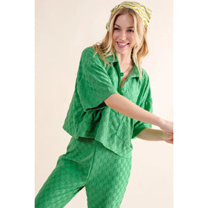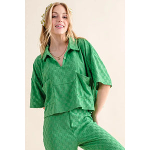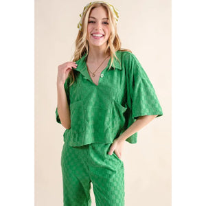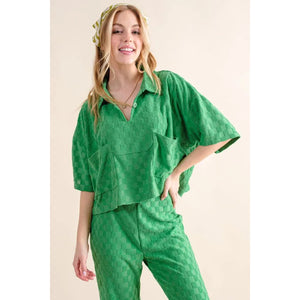 And The Why Brushed Texture Checker Board Pattern Casual Top