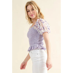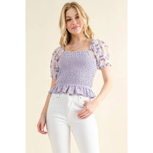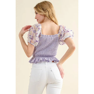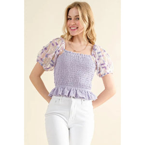 The embellishment sleeve smocked top is a charming and elegant piece for your wardrobe. The embellished sleeves add a touch of glamour and sophistication to the top. The smocked detailing creates a fitted and flattering silhouette. This top is perfect for dressing up a casual outfit or adding a chic touch to a more formal look. Pair it with tailored pants or a skirt for a polished ensemble, or wear it with jeans for a stylish and effortless everyday look.