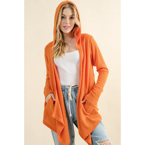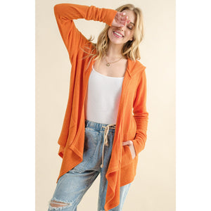 And The Why Full Size Thermal Hooded Open Front Cardigan with Pockets