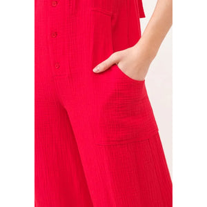 Gauze loose fit tied back overalls are a relaxed and bohemian-inspired wardrobe staple for effortless style. The loose fit offers comfort and ease of movement, while the tied back adds a unique and playful twist to the design. Pair these overalls with a simple tee or tank for a laid-back and chic look perfect for casual outings or summer adventures.