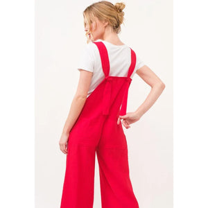 And The Why Gauze Loose Fit Tied Back Overalls