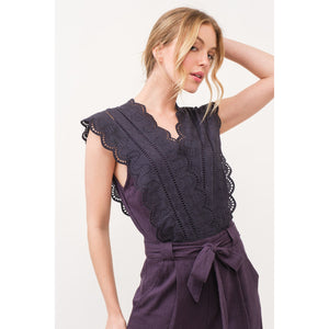 The laced surplice tie waist jumpsuit is a chic and sophisticated piece that combines elegance with modern style. Featuring a laced surplice neckline and a flattering tie waist detail, this jumpsuit is both feminine and figure-flattering. Perfect for a variety of occasions, from a night out to a special event, the jumpsuit offers a versatile and stylish option. The laced detailing adds a touch of sophistication, while the tie waist cinches in the silhouette for a flattering fit. Elevate your look with this fashionable and on-trend laced surplice tie waist jumpsuit for a stunning and confident ensemble.
