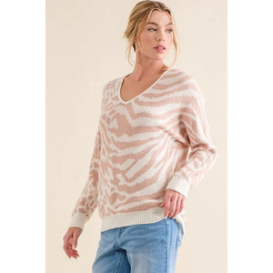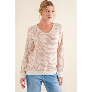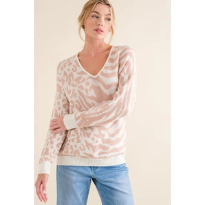 And The Why Leopard Zebra Combo Casual Sweater Top