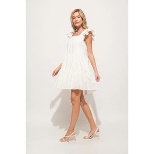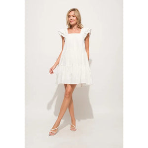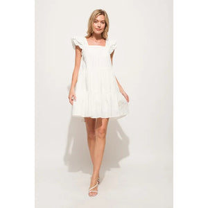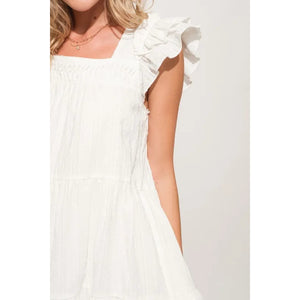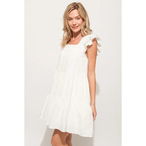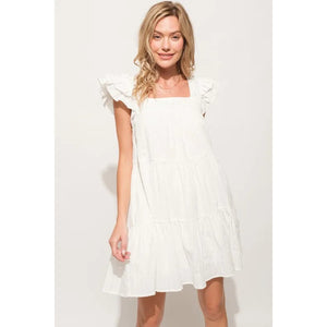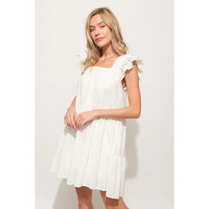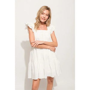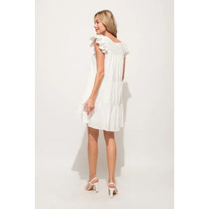 And The Why Origami Pleating Ruffled Sleeve Tiered Dress