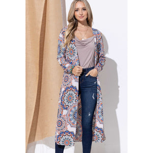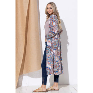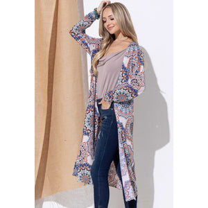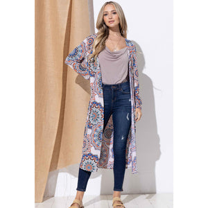 This Printed Kimono Open Front Longline Cardigan is a stylish and versatile addition to any wardrobe. Its flowing, open-front design drapes gracefully over any outfit, while the vibrant print adds a touch of elegance. The longline cut provides extra coverage and a chic silhouette. Perfect for layering, it transitions seamlessly from day to night. Whether paired with jeans or a dress, this cardigan enhances your look with a blend of comfort and sophistication. Ideal for those who appreciate both fashion and function.