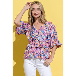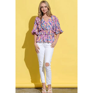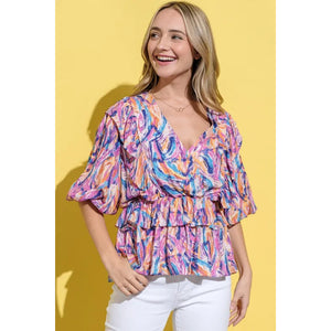 The Printed Lantern Sleeve Blouse Top is a trendy and chic piece that features unique lantern sleeves and a stylish print. The lantern sleeves are voluminous and add a dramatic and fashion-forward touch to the blouse. The printed design adds interest and character to the top, making it a statement piece in your wardrobe. This blouse can be dressed up with a skirt or trousers for a sophisticated look, or paired with jeans for a more casual outfit. The combination of the lantern sleeves and printed pattern creates a fashionable and eye-catching ensemble that is perfect for various occasions.