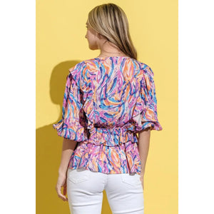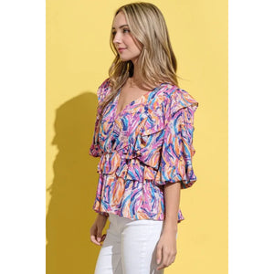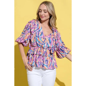 And The Why Printed Lantern Sleeve Blouse