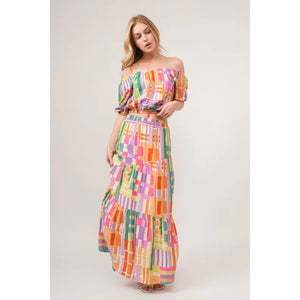 The Puff Sleeve Elastic Edges Geo Printed Crop Top is a trendy and stylish top featuring puff sleeves with elastic edges and a geometric print design. This crop top is perfect for creating a fashionable and chic look, ideal for pairing with high-waisted bottoms for a flattering silhouette. Elevate your outfit with this eye-catching and modern crop top!