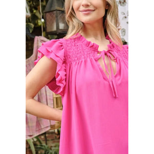 And The Why Ruffle Shoulder Smocked Detailed Dress