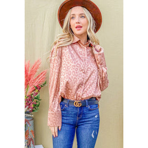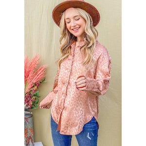 The Satin Leopard Button Up Curved Hem Shirt offers a luxurious touch with its sleek satin fabric and bold leopard print. The button-up design adds a classic touch, while the curved hem provides a modern, flattering silhouette. Its smooth texture drapes beautifully, making it a standout piece for both casual and formal settings. This shirt effortlessly blends style and sophistication, perfect for making a statement. Add a touch of wild elegance to your wardrobe with this chic, versatile piece.