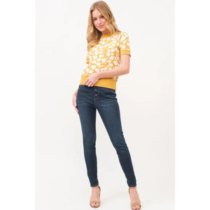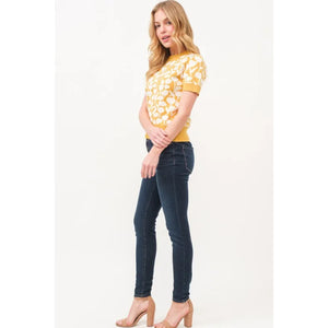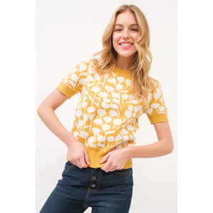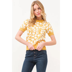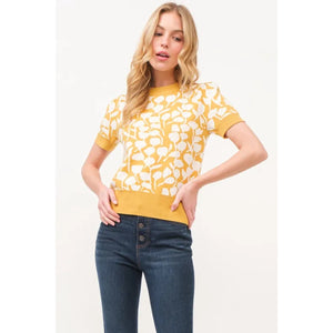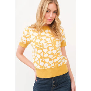 And The Why Short Sleeve Leaf Pattern Knit Top