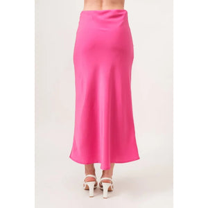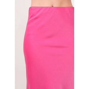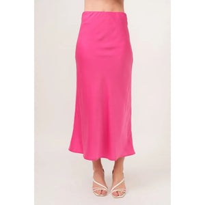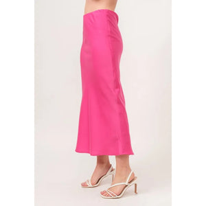 The solid satin midi skirt is a versatile and elegant choice for a sleek and sophisticated look. The satin fabric offers a luxurious and silky feel, perfect for adding a touch of glamour to any outfit. The midi length provides a classic and timeless silhouette that can be dressed up or down for various occasions. This skirt is a chic and versatile piece that can be paired with a blouse for a formal event or with a casual top for a more relaxed ensemble. Ideal for adding a touch of refinement to your wardrobe, the solid satin midi skirt is a stylish and graceful option.