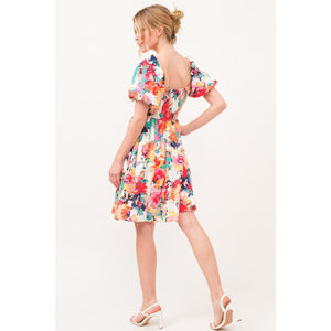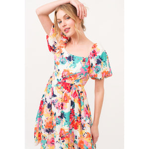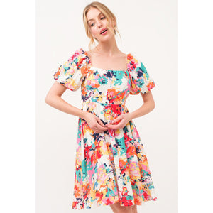 A square neck puff sleeve floral dress is a stylish and feminine outfit choice. This type of dress typically features a square neckline that adds a modern touch, puff sleeves that create a vintage-inspired look, and a floral print that adds a romantic and soft touch to the overall style. It's a versatile dress that can be worn for various occasions, such as a casual day out, a garden party, or even a semi-formal event depending on the design and fabric. Pairing it with some sandals or heels and simple accessories can complete the look beautifully.