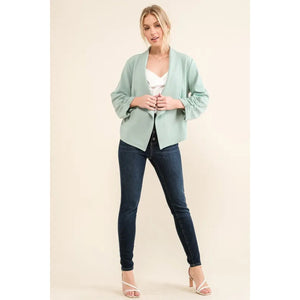 And The Why Stretch Non-Wrinkled Basic Open-Front Blazer
