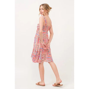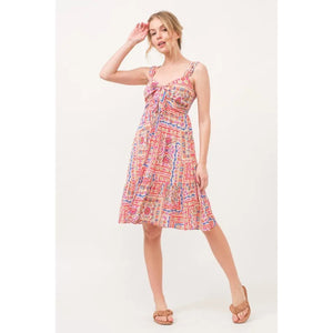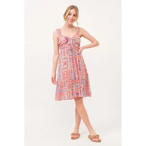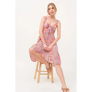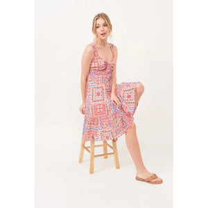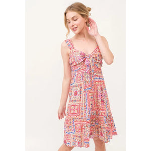 And The Why Tied Front Smocked Back Tiered Boho Printed Dress