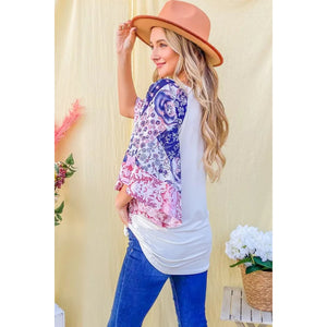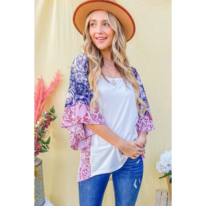 The floral print bell sleeve top is a charming and feminine garment for adding a touch of elegance to your outfit. The floral print brings a lively and vibrant element to the design. The bell sleeves add a romantic and flowy flair, perfect for creating a soft and graceful silhouette. This top can be paired with jeans or tailored pants for a versatile and stylish look. The floral print and bell sleeves combine to create a sophisticated and chic ensemble suitable for various occasions. Complete your outfit with minimal jewelry and a pair of heels to showcase the top and elevate your overall style.
