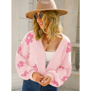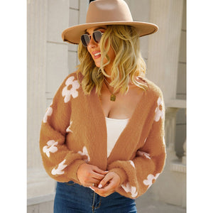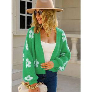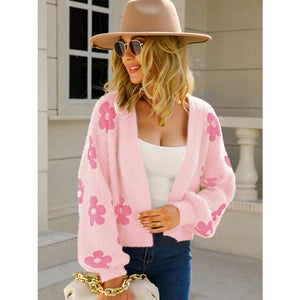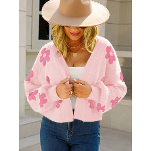 Angel Wings Flower Open Front Long Sleeve Cardigan