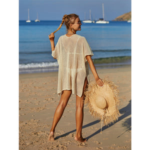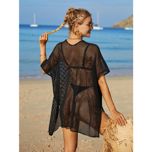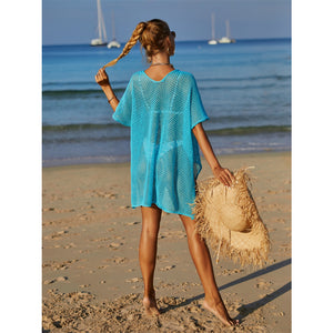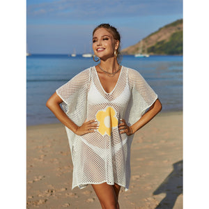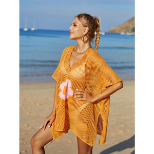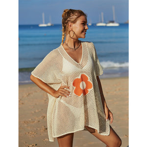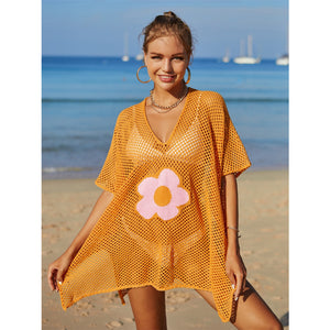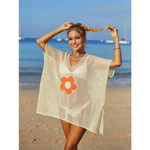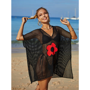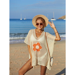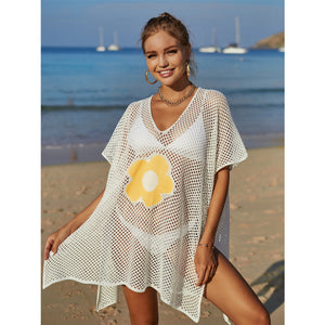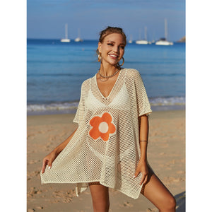 Angel Wings Openwork Flower V-Neck Short Sleeve Cover Up