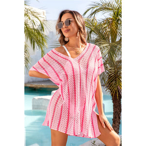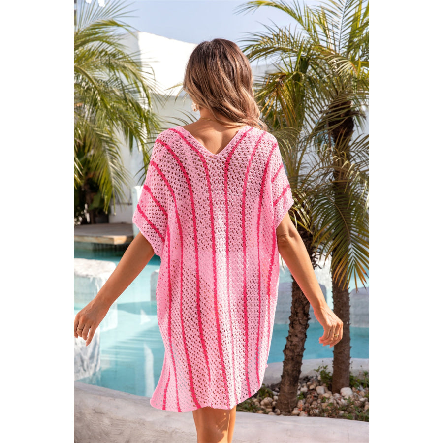 Angel Wings Openwork V-Neck Short Sleeve Cover Up