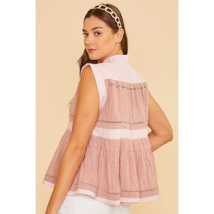 Annie Wear Contrast Trim Peplum Button Detail Blouse