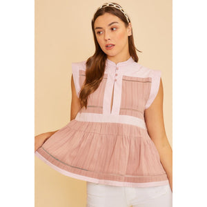 The Contrast Trim Peplum Button Detail Blouse showcases a sophisticated design. It features striking contrast trim accents. The peplum silhouette adds a feminine touch to the blouse. The button detailing enhances the overall elegance of the top.