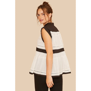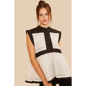 Annie Wear Contrast Trim Peplum Button Detail Blouse