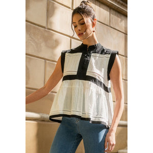 The Contrast Trim Peplum Button Detail Blouse showcases a sophisticated design. It features striking contrast trim accents. The peplum silhouette adds a feminine touch to the blouse. The button detailing enhances the overall elegance of the top.