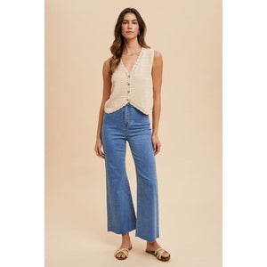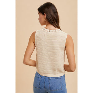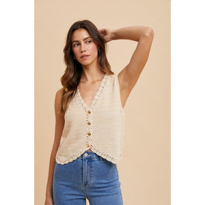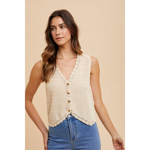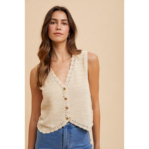 Annie Wear Crochet Trim Button Down Sweater Vest