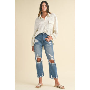 Annie Wear Distressed Raw Hem Cropped Jeans