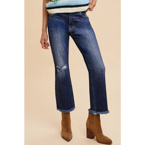 Annie Wear Distressed Raw Hem Straight Leg Cropped Jeans
