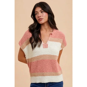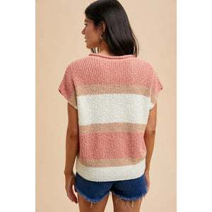 Annie Wear Low Gauge Color Block Textured Sweater Top