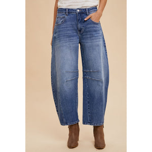 Annie Wear Mid Rise Barrel Leg Jeans with Pockets
