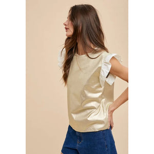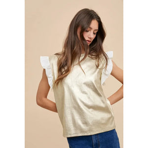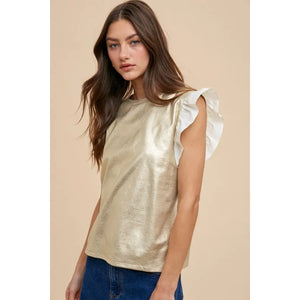Annie Wear Mix Media Metallic Knit Ruffle Sleeve Top