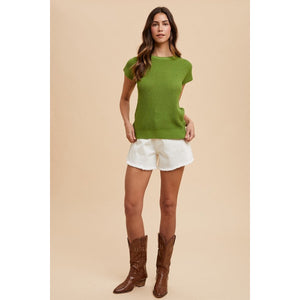 Annie Wear Round Neck Short Sleeve Sweater