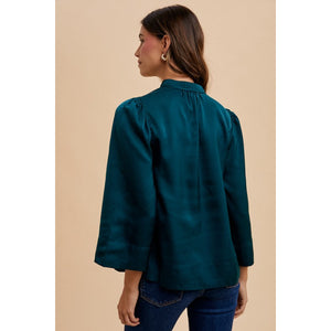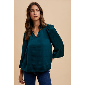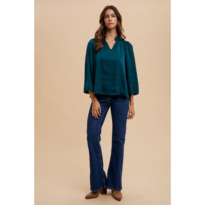 Annie Wear Satin Notched Three-Quarter Sleeve Blouse