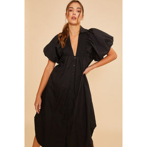 The Smocked Puff Sleeve Midi Dress is a trendy and feminine choice for any occasion. This dress features smocked detailing, creating a flattering and comfortable fit. The puff sleeves add a touch of drama and style, while the midi length offers a sophisticated and elegant look. Perfect for both casual and dressy events, this dress can be dressed up with heels or down with sneakers for a versatile outfit. With its chic design and on-trend silhouette, the Smocked Puff Sleeve Midi Dress is a must-have addition to your wardrobe.