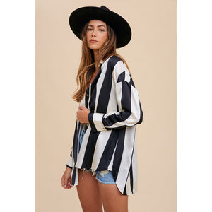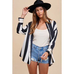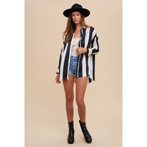 Annie Wear Striped Dropped Shoulder Button Up Shirt