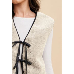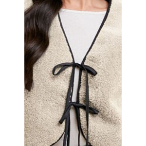 The V-Neck Tie Detail Vest Coat is a stylish and versatile outerwear piece that combines a v-neckline with tie detailing for a modern and chic look. The v-neck design adds a touch of sophistication to the coat, while the tie detail offers a customizable and flattering fit. This vest coat is perfect for layering over tops or dresses for added warmth and style. The versatile design allows for easy dressing up or down, making it a practical choice for various occasions. Whether worn open or tied, the V-Neck Tie Detail Vest Coat is a trendy and fashionable addition to your wardrobe.
