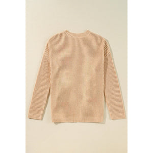 Apricot Cable Knit Drop Shoulder Side Slits Loose Sweater