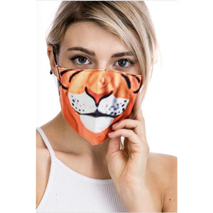 Tiger and Lion Animal Print, Cotton Fabric, Washable, Ear Loops Face Mask with Filter Pocket