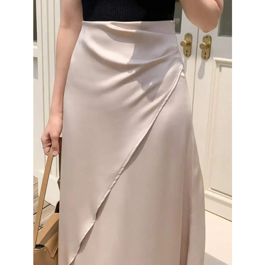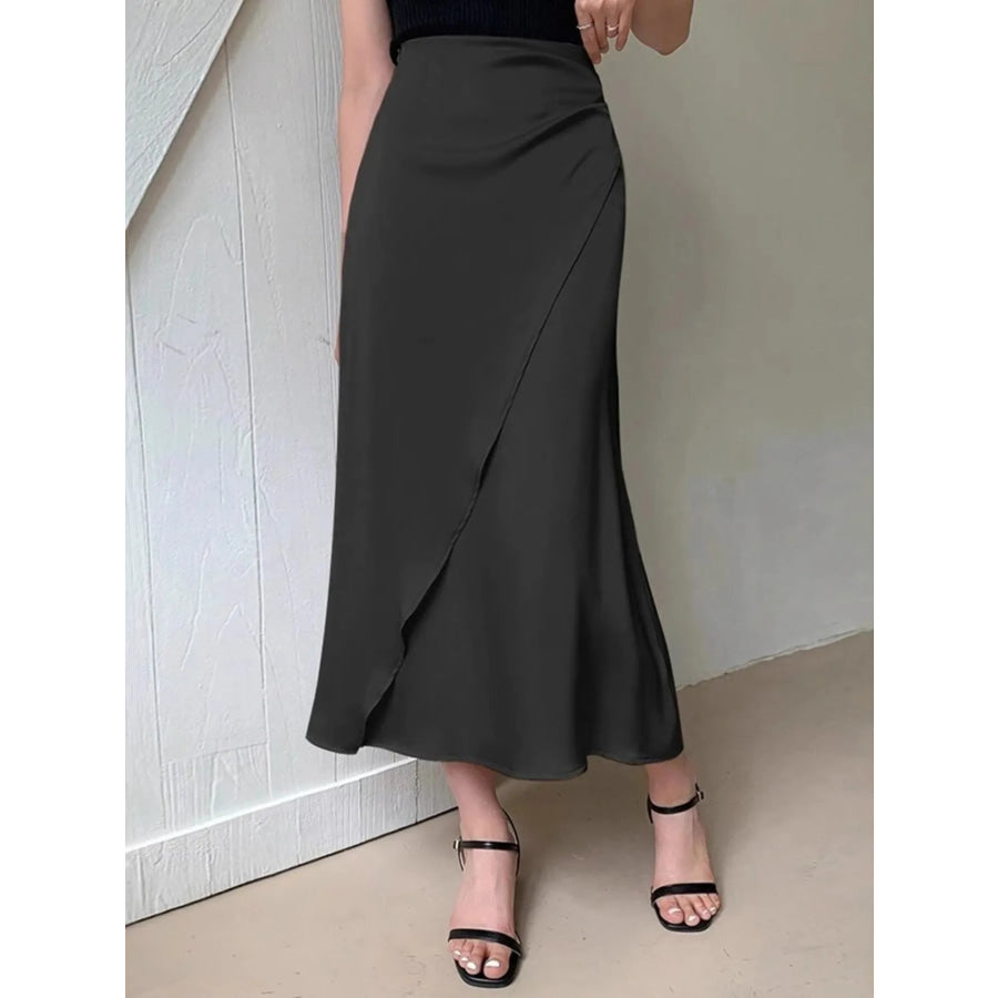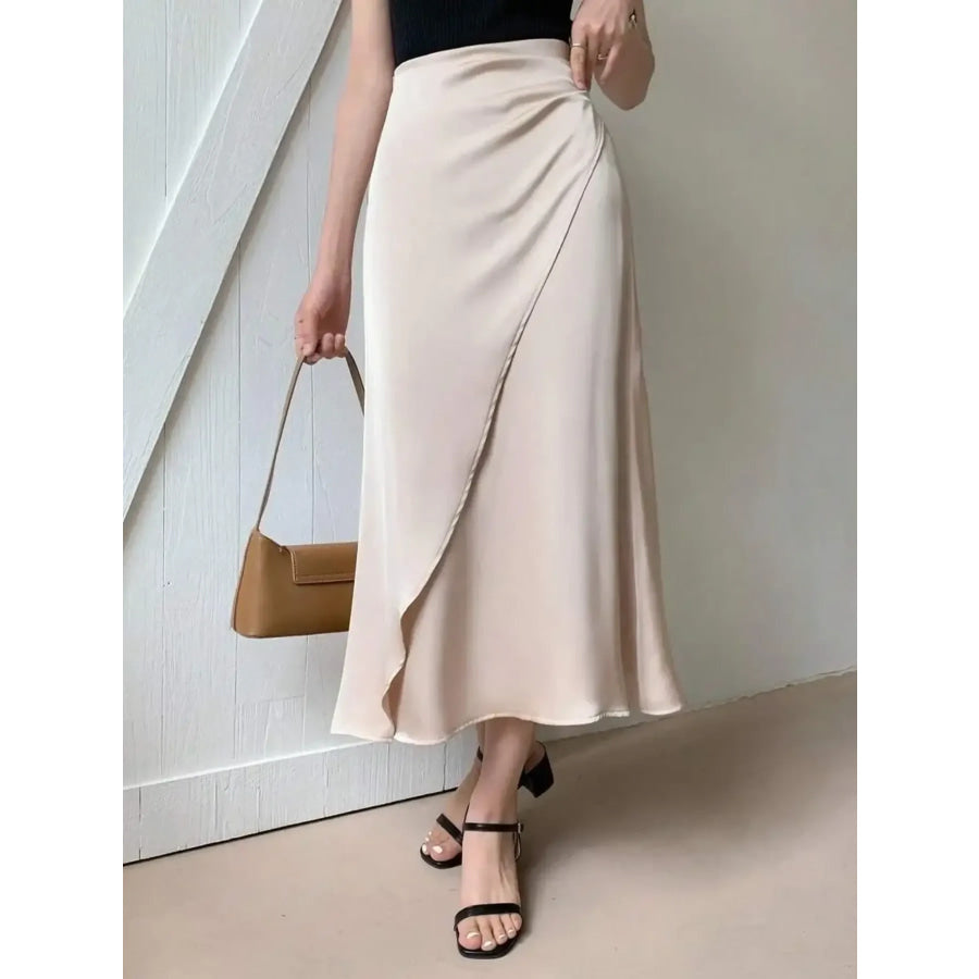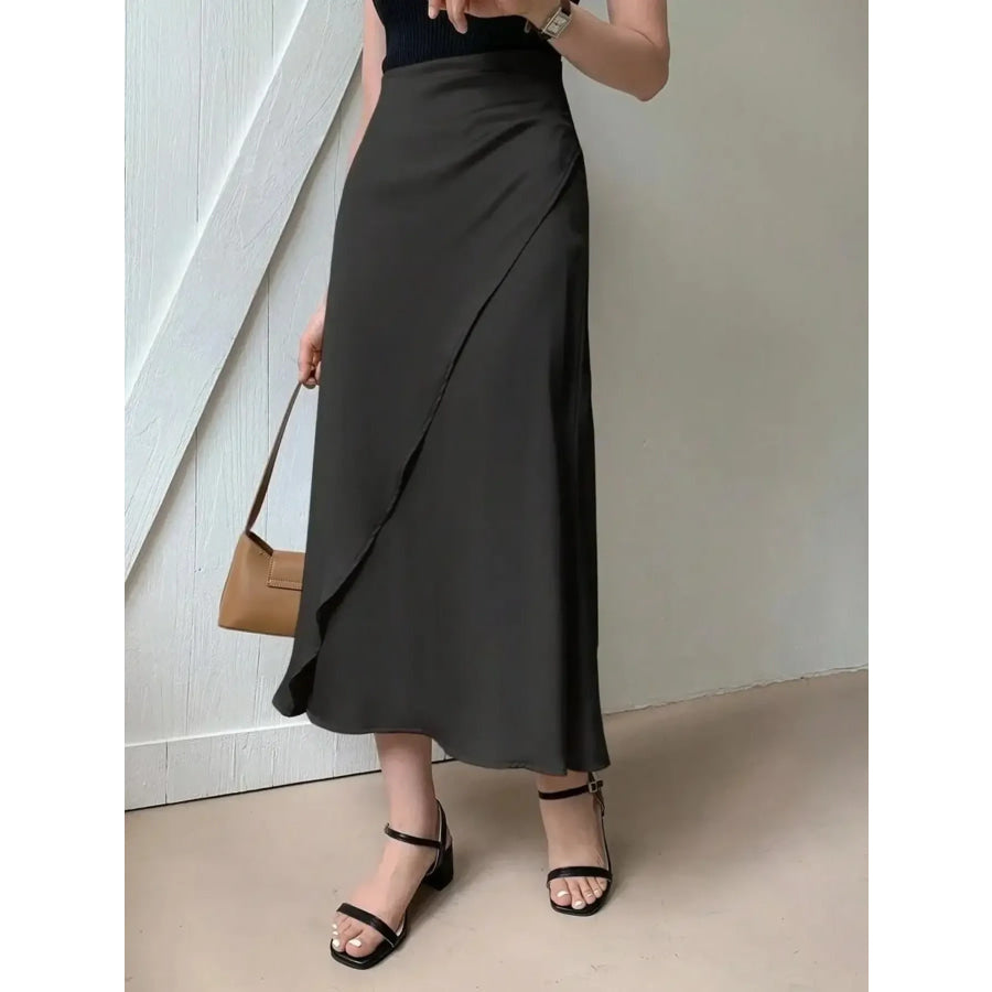 Asymmetric Wrap Midi Skirt with Fluted Hem