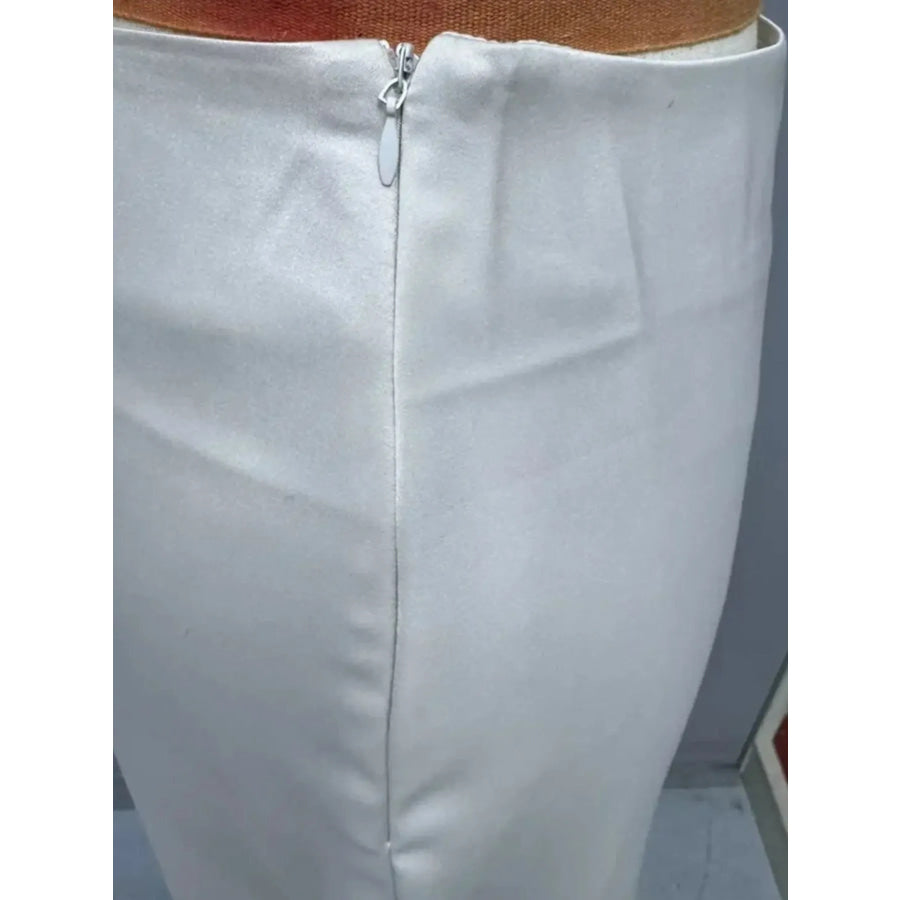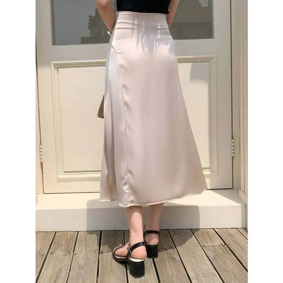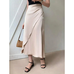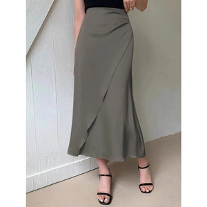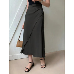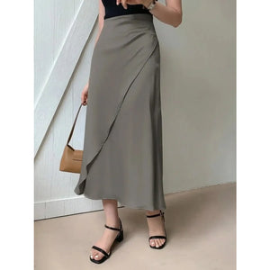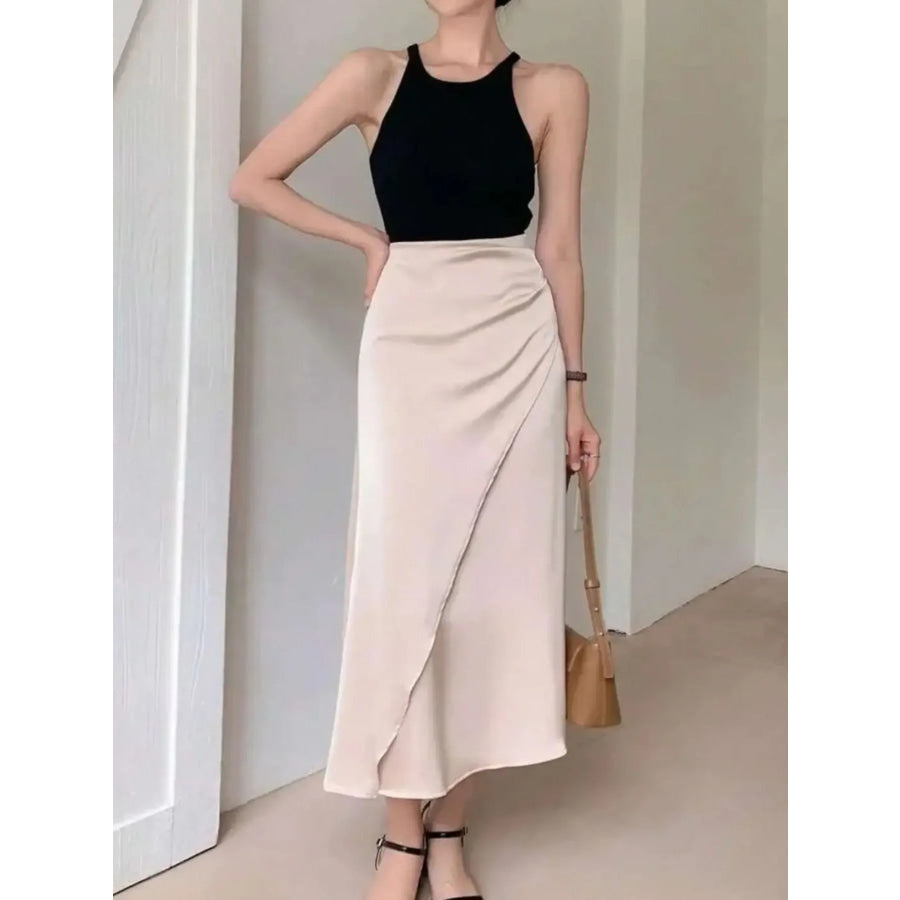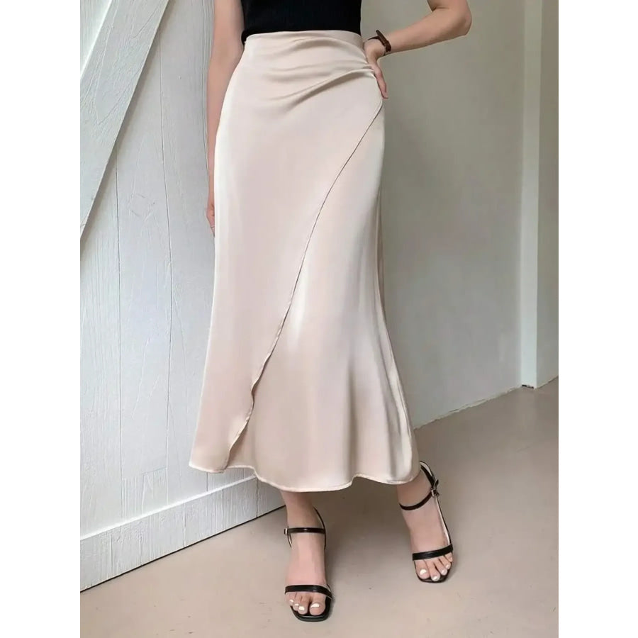 Asymmetric Wrap Midi Skirt with Fluted Hem