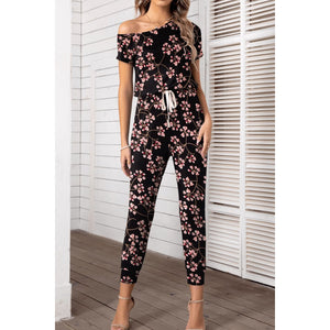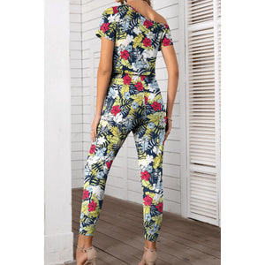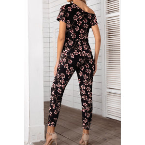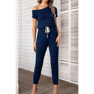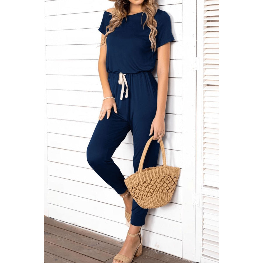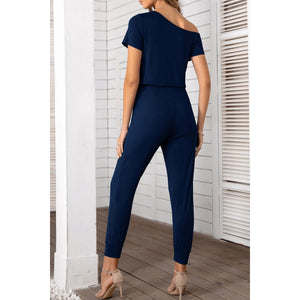 Asymmetrical Neck Short Sleeve Jumpsuit