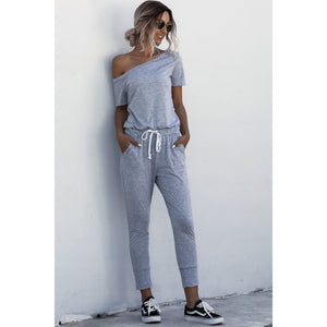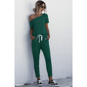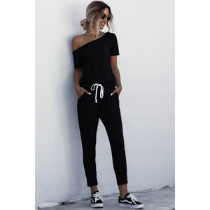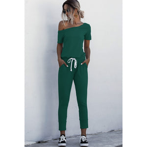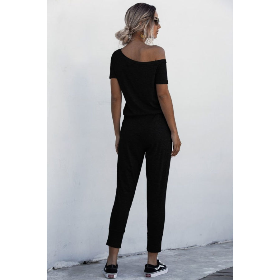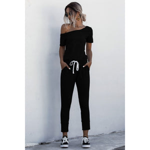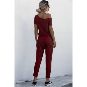 Asymmetrical Neck Tied Jumpsuit with Pockets