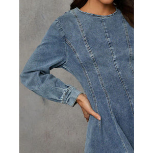 Back Zip Round Neck Long Sleeve Dress