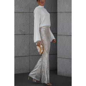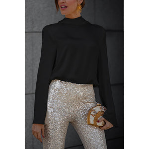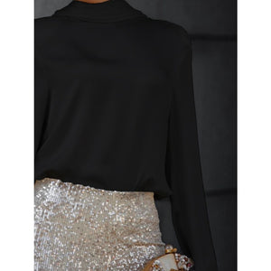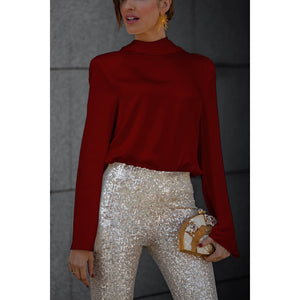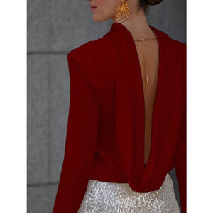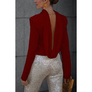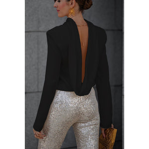 Backless Cowl Neck Long Sleeve Blouse